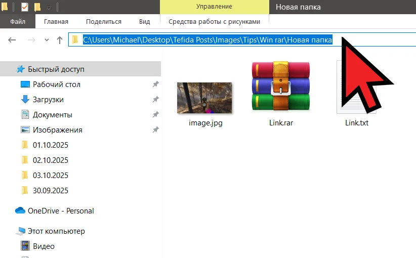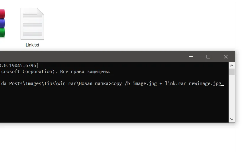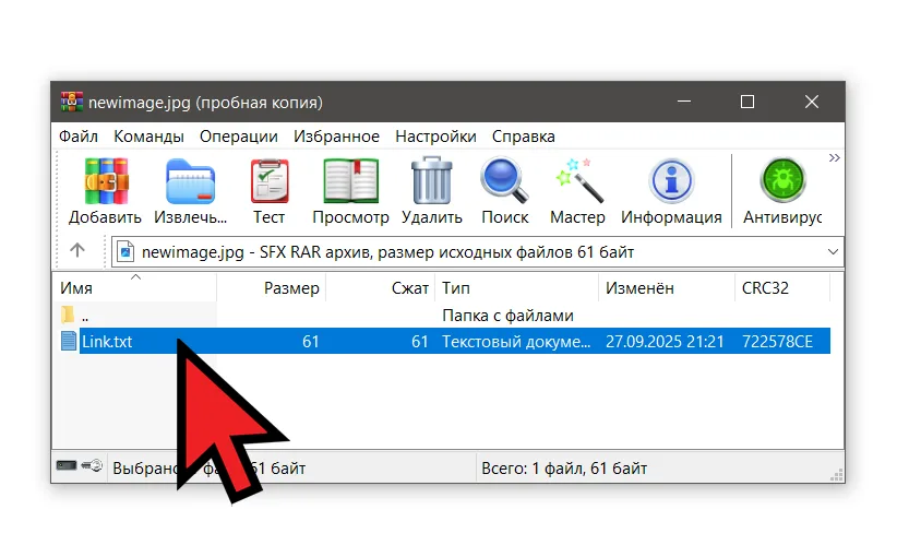Но если открыть новую полученную картинку при помощи архиватора WinRAR, то картинка откроется как архив, в котором содержится наш файл со ссылкой.