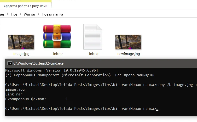 После выполнения команды в вашей папке и конкретно в моем случае в “Новой папке” появилась абсолютно новая картинка newimage.jpg.