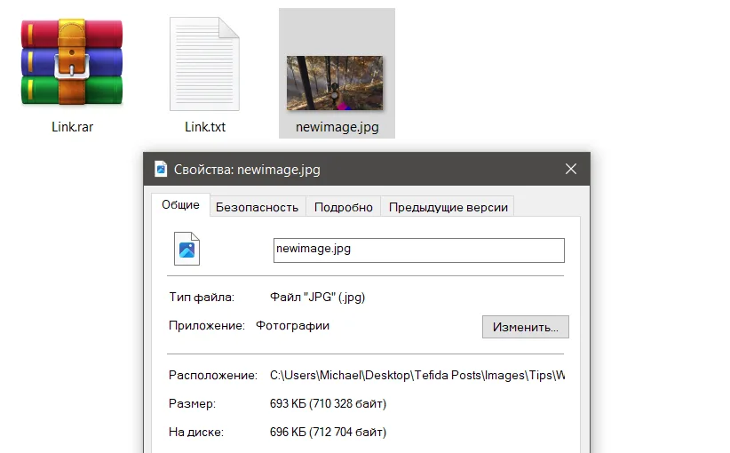 Свойства изображения тоже не дают повода для сомнений, новая картинка обладает всеми стандартными свойствами изображения.